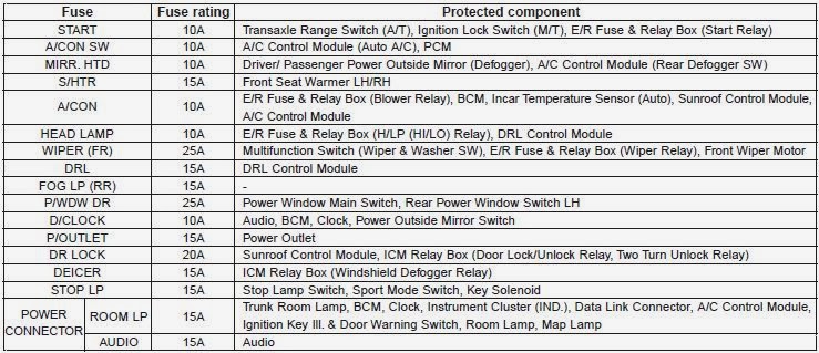 Fuse box diagram location and assignment of electrical fuses for kia forteceratok3 2009 2010 2011 2012 2013.