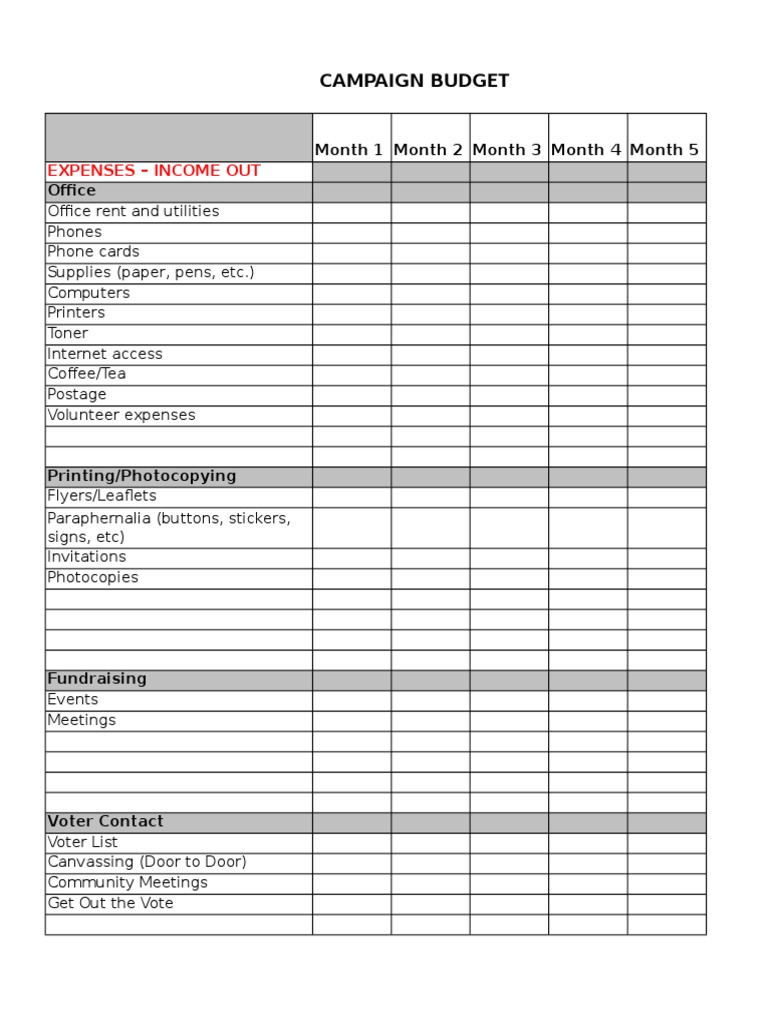 Campaign Budget Template And Example