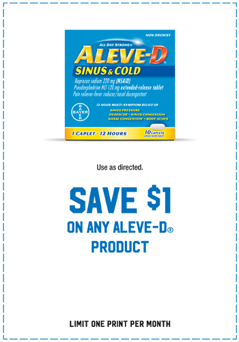 Aleve coupons canada printable. Whatever your aches and pains may be take aleve and start feeling better. New aleve coupon for canada available by print option only new save 200 off any aleve nighttime product 20ct. Take stock of items when the 2 off manufacturer coupon is released. Use it in conjunction with the 2 off store coupon thats usually available at rite aid walgreens and other drugstores.
