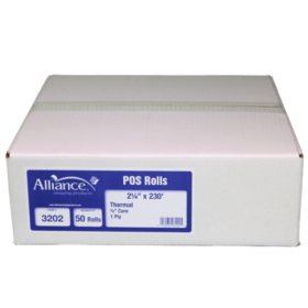 Alliance Thermal Pos Receipt Paper Rolls 50 Rolls 2 1 4 W X 50 Feet L 1 1 2 Diameter