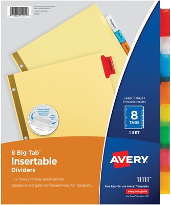 The unique design keeps inserts from falling out and tabs are easy to customize with free templates from avery design print online.
