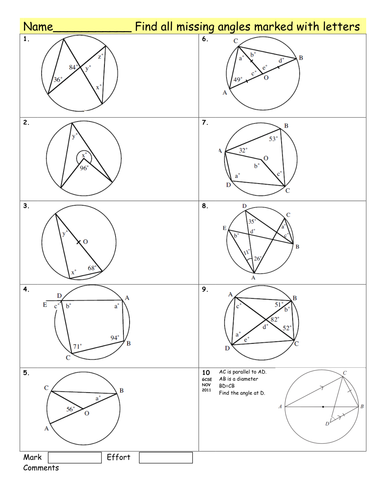 Circle Geometry Worksheets