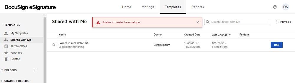 Error Unable To Create The Envelope When Using A Template