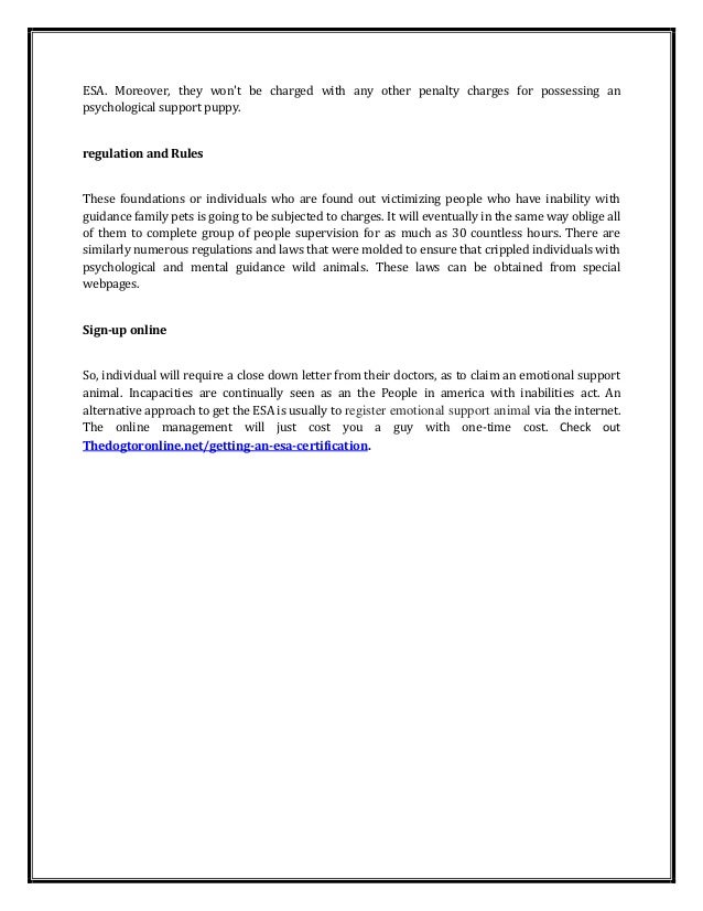 Esa is a not for profit self funded organization. To have a legitimate support animal you must have an esa letter from a licensed mental health professional. Recently tigger and i decided to take a much needed vacation. Wading through all the laws and airline regulations became very tedious and i hastily chose an online esa registry that was quick to promise that all i had to do was pay them and id get my esa letter.