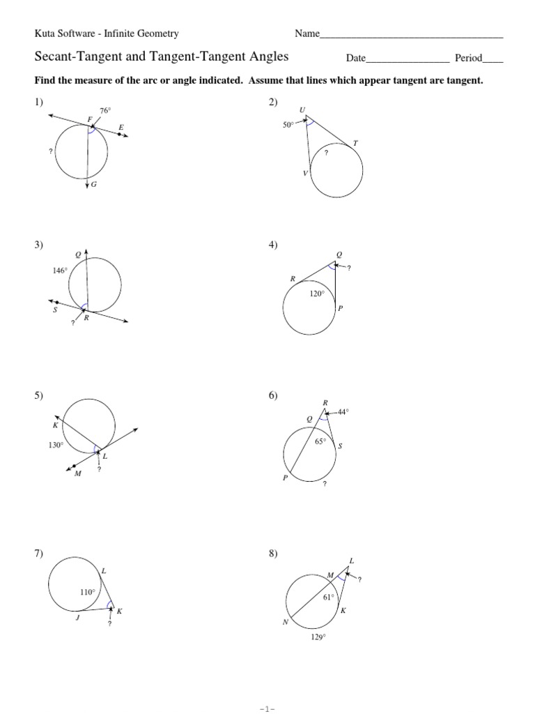 11 Secant Tangent And Tangent Tangent Angles Kuta Software