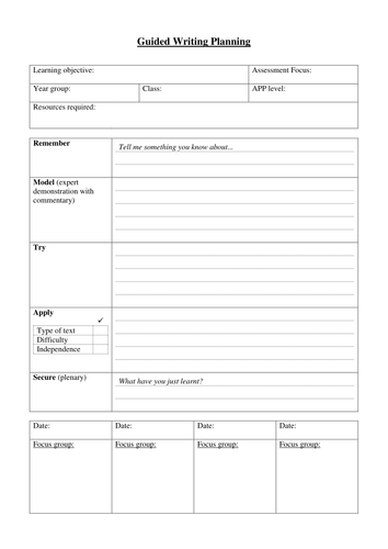 Guided Writing Lesson Plan Template Framework And Data Collection
