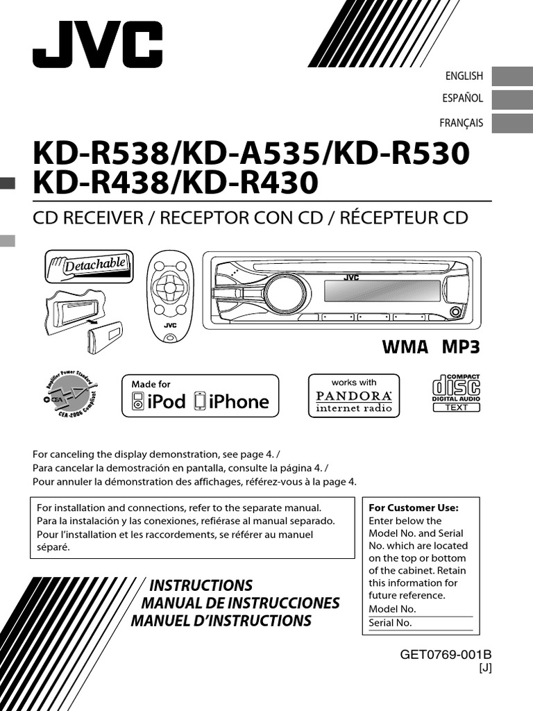 Jvc Kd R530 Kd A535 Kd R430 Kd R438 Kd R538 User Manual