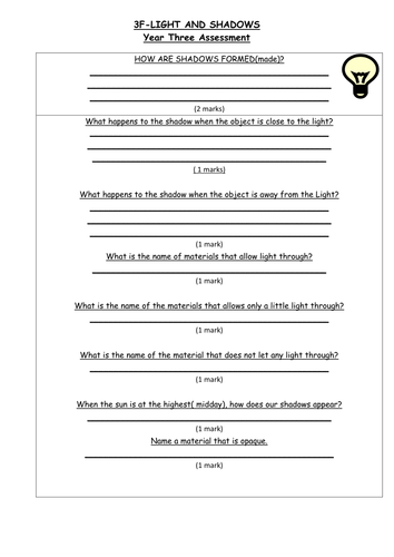Light And Shadow Worksheets Grade 4