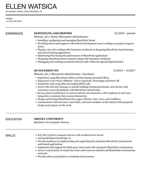 Sharepoint Administrator Resume Samples Velvet Jobs